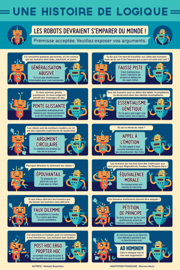 Arguments rhétologiques fallacieux : erreurs et manipulation de rhétorique et de logique. Les arguments sont divisés en différentes catégories, avec pour chacun la définition et un exemple. https://informationisbeautiful.net/visualizations/rhetological-fallacies/